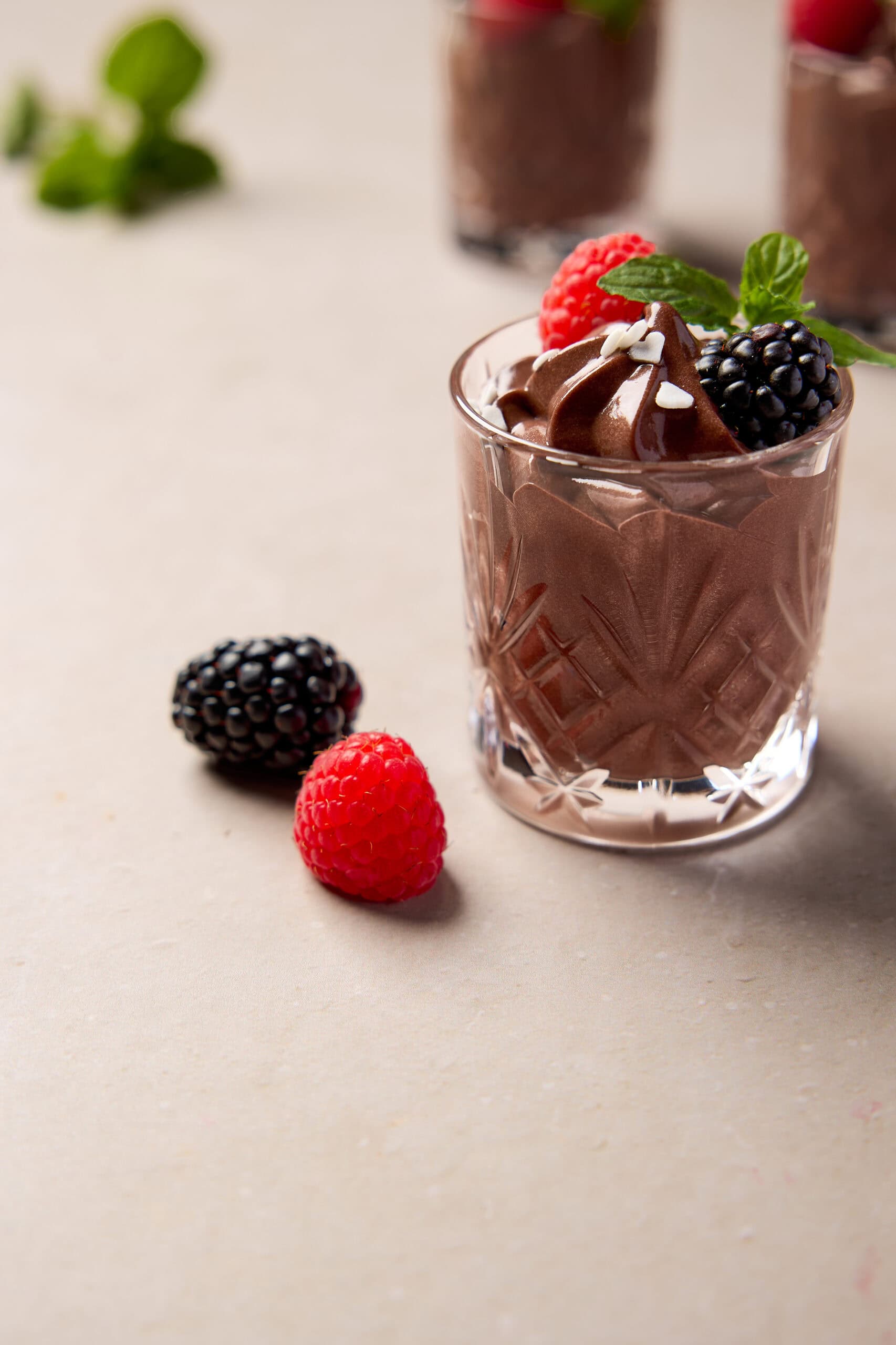 Die Tofu-Schokoladenmousse in kleine Gläser füllen und bis zum Servieren kalt stellen. Fertig.